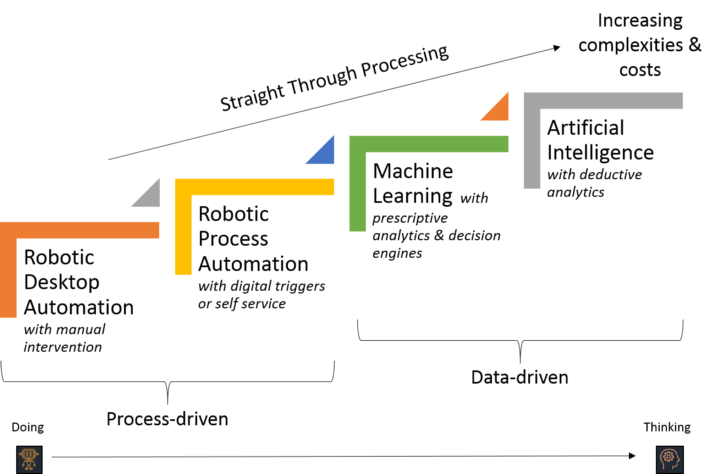 Robotic process automation (or RPA) is an emerging form of clerical process automation technology based on the notion of software robots or artificial intelligence (AI) workers.